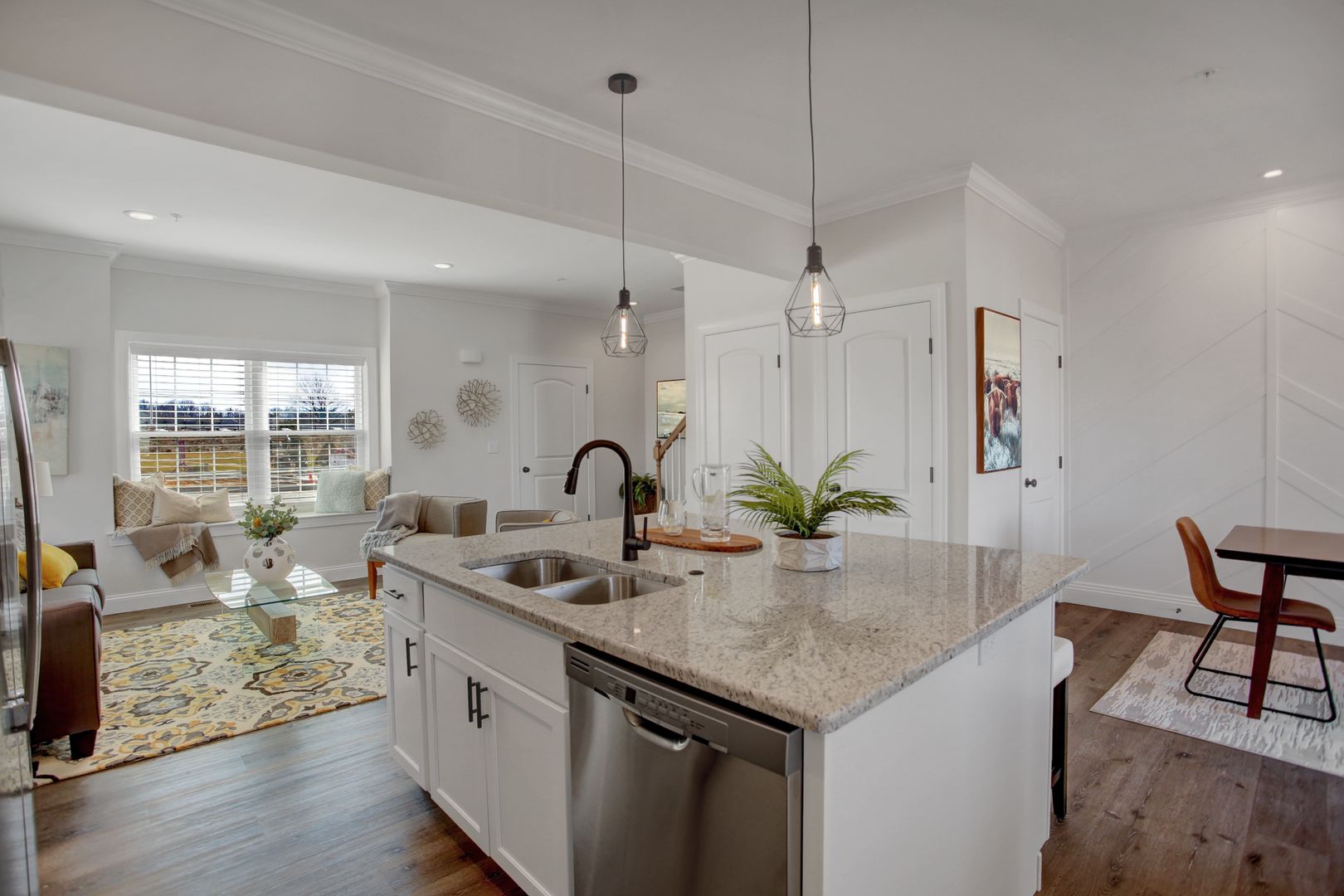 Will this be your new home? Welcome to the Laurels! This community features a combination of modern design and inviting country feel. The first floor has an open concept design, inviting lots of natural light. The kitchen's abundant cabinets, center island with built in breakfast bar, dishwasher, side by side refrigerator, gas stove and above range microwave, create a chef's oasis. Paired with the granite countertops, and shiplap/herringbone accent walls in the dining area, the kitchen/dining room offers a warm and modern feel. Additionally, the first floor includes a rear patio, laundry with the w/d included, and half bath. The second floor includes the master bedroom with master bath, and an additional bedroom with a Jack and Jill bathroom. The third floor features a large third bedroom. Additional features: full basement, central air, gas heat, off street parking and a sprinkler system.