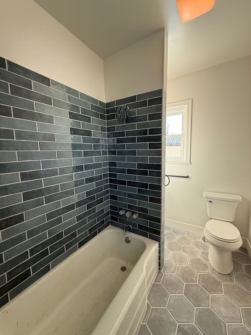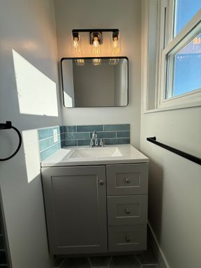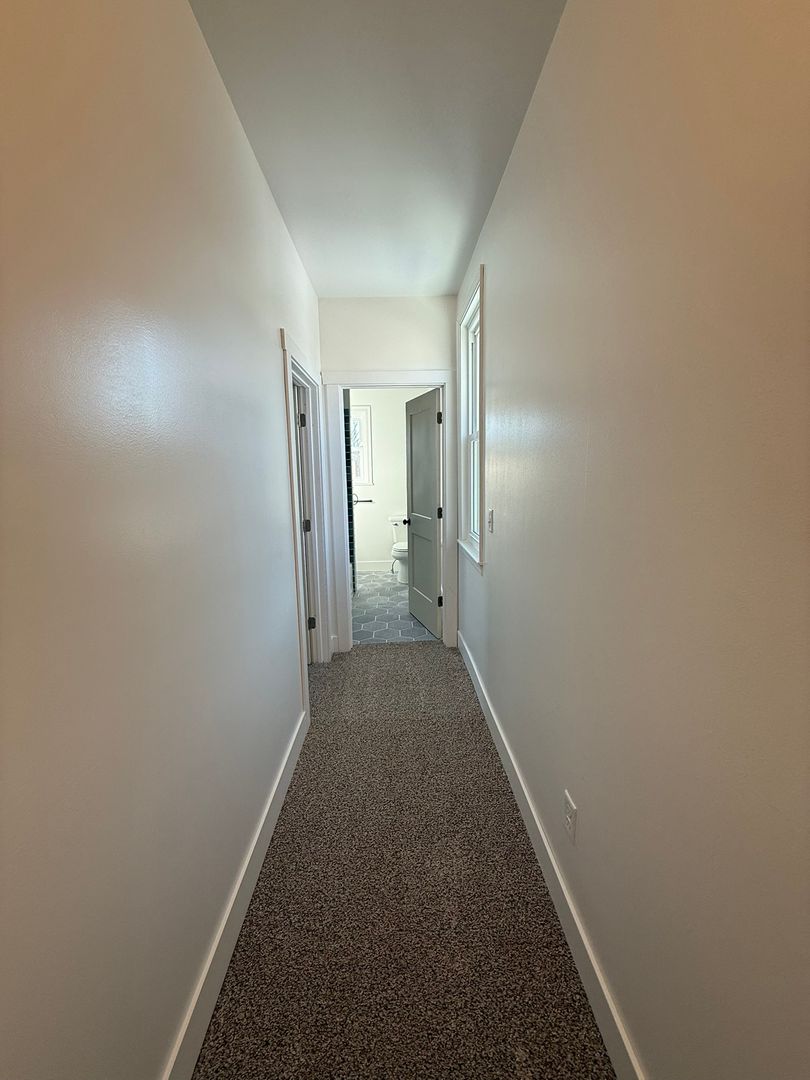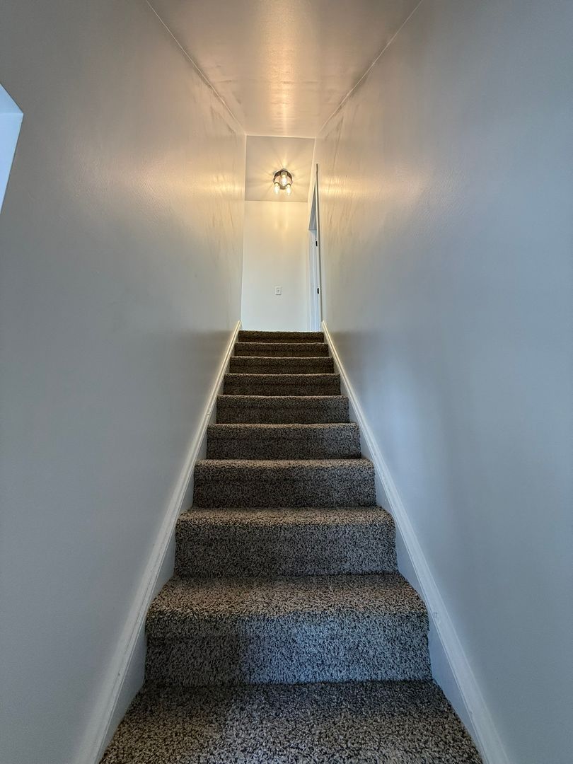 The upper level of the apartment features two generously sized bedrooms and a full bathroom, offering plenty of space and privacy.