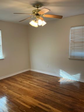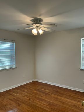 The home also includes a basement ideal for storage with washer and dryer hookups and is equipped with an on-demand water heater, central air, and an efficient gas furnace for year-round comfort. A rear shed is available for resident use, offering additional storage space.