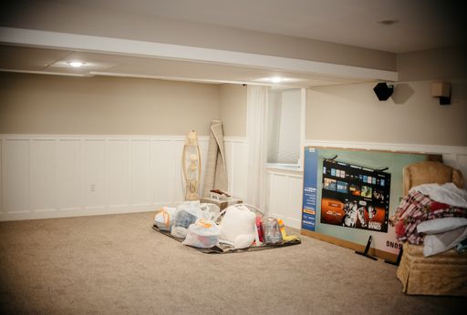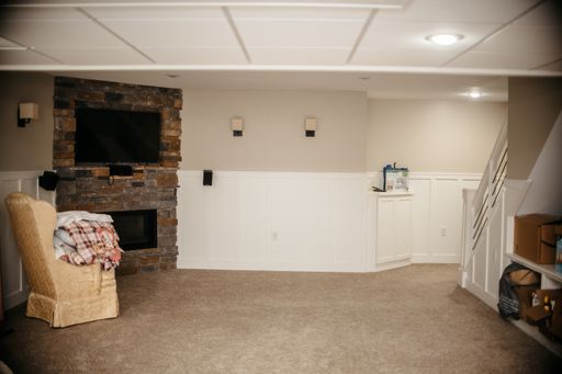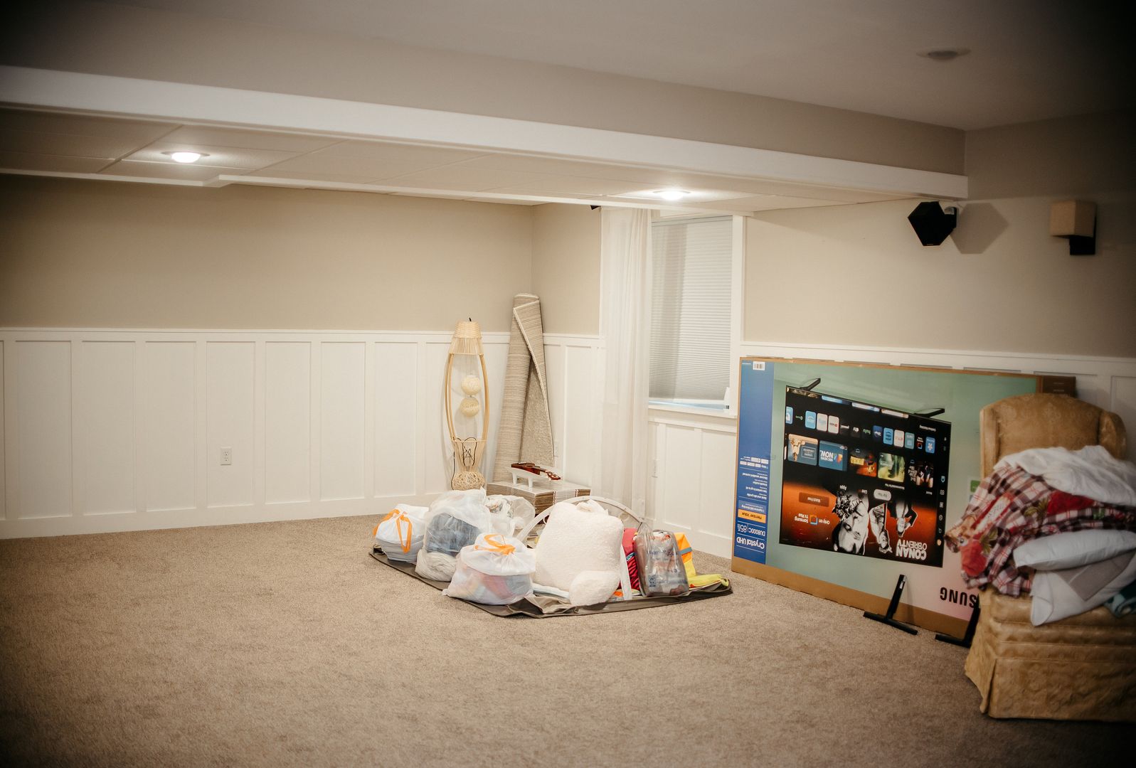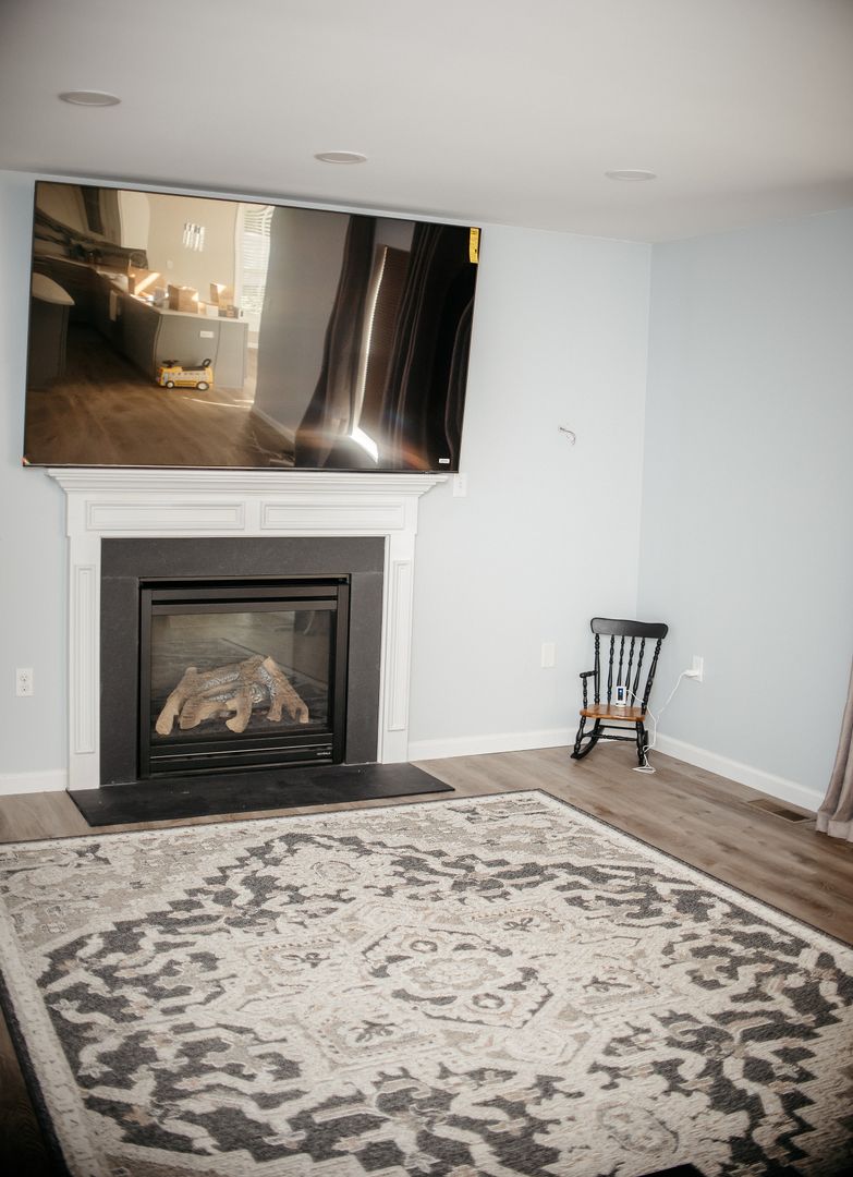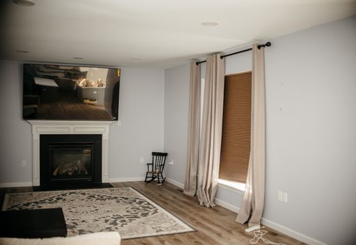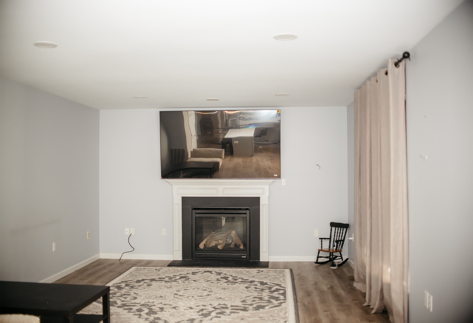 The finished lower level expands the home’s versatility with a bonus room and a full bathroom, ideal for a fourth bedroom, private office, gym, or media lounge. The family room downstairs includes another large flat-screen TV, perfect for movie nights or weekend gatherings.