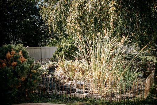 Outdoors, step into your private backyard oasis. The fenced yard features a mature weeping willow, a tranquil koi pond, and a charming garden shed, creating a peaceful setting that’s rare to find. The attached two-car garage includes an electric vehicle charging station, offering convenience for electric vehicle recharging.