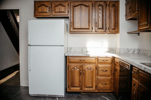 Step inside and you’re greeted by a warm, inviting atmosphere filled with natural light and timeless character. The spacious first floor features an open living and dining area ideal for both relaxing and entertaining. The kitchen offers plenty of room to cook and gather, complete with a refrigerator, electric range, and dishwasher. A convenient half bath is located just off the kitchen, along with access to the fenced-in backyard, perfect for quiet mornings, gardening, or evening get-togethers.