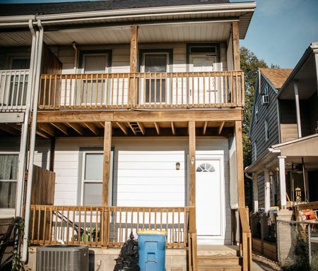 Upstairs, you’ll find two cozy bedrooms and a full bath. The main bedroom showcases beautiful exposed brick, adding texture and charm, and opens onto a private balcony, the perfect retreat for morning coffee or unwinding at the end of the day. The home also includes an attic for extra storage, laundry hookups in the basement, gas heat, and central air for year-round comfort.
